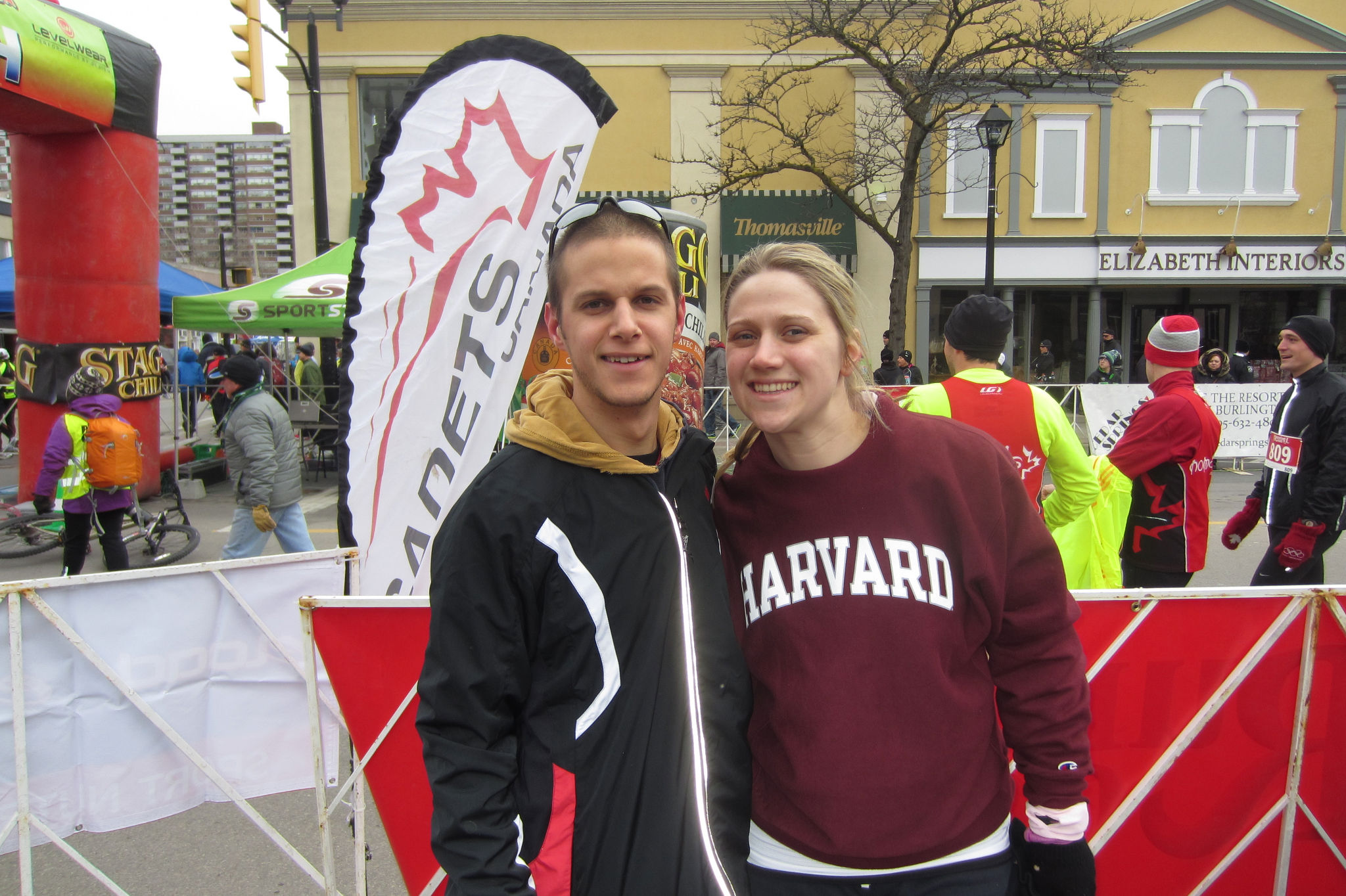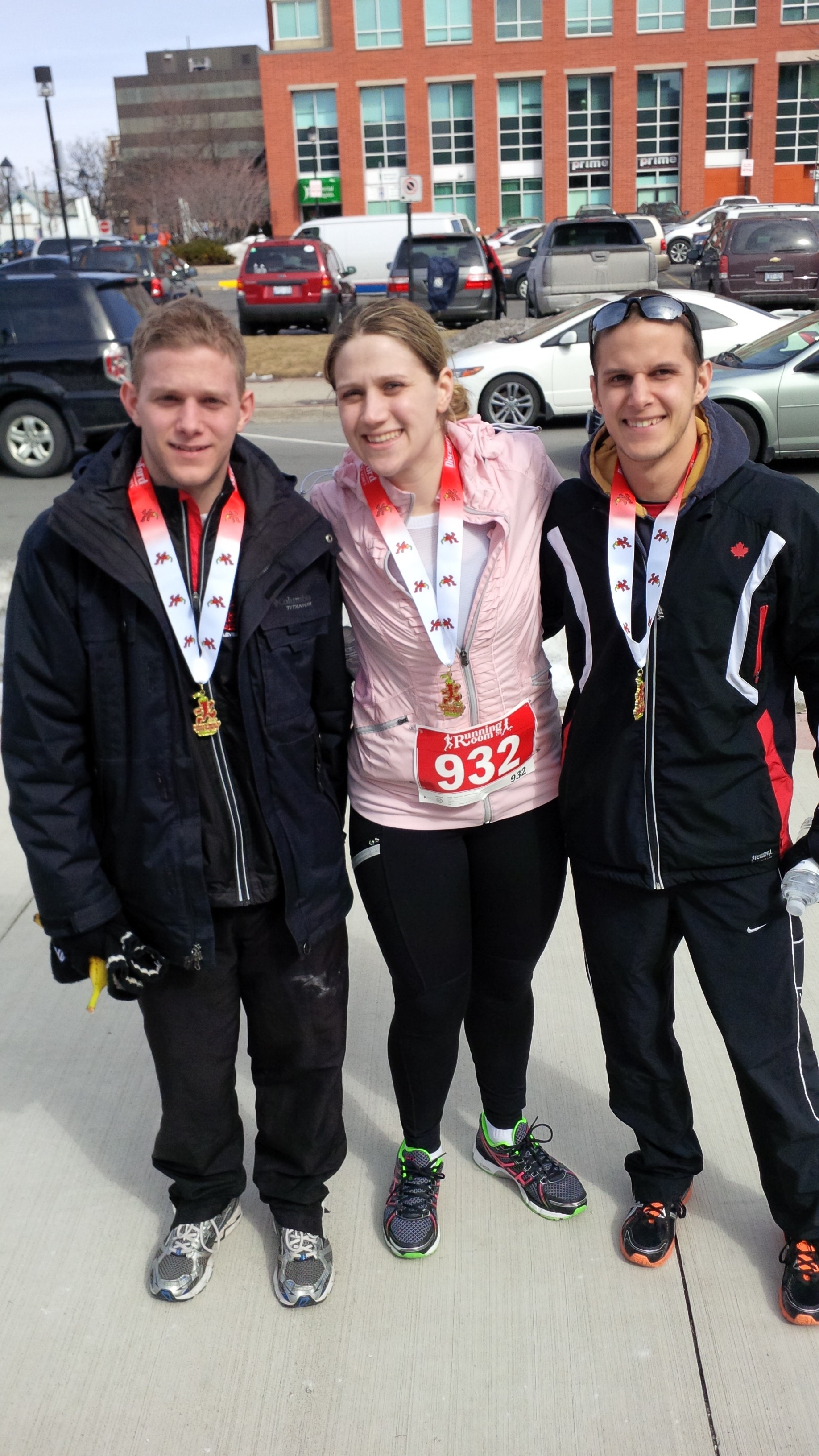 Matt wanted to get to the race at least an hour early in the morning to do a warm up jog with some of his running buddies, which worked out in our favour anyways because we got a free parking spot downtown pretty much right next to the start line! I love it when a plan comes together!