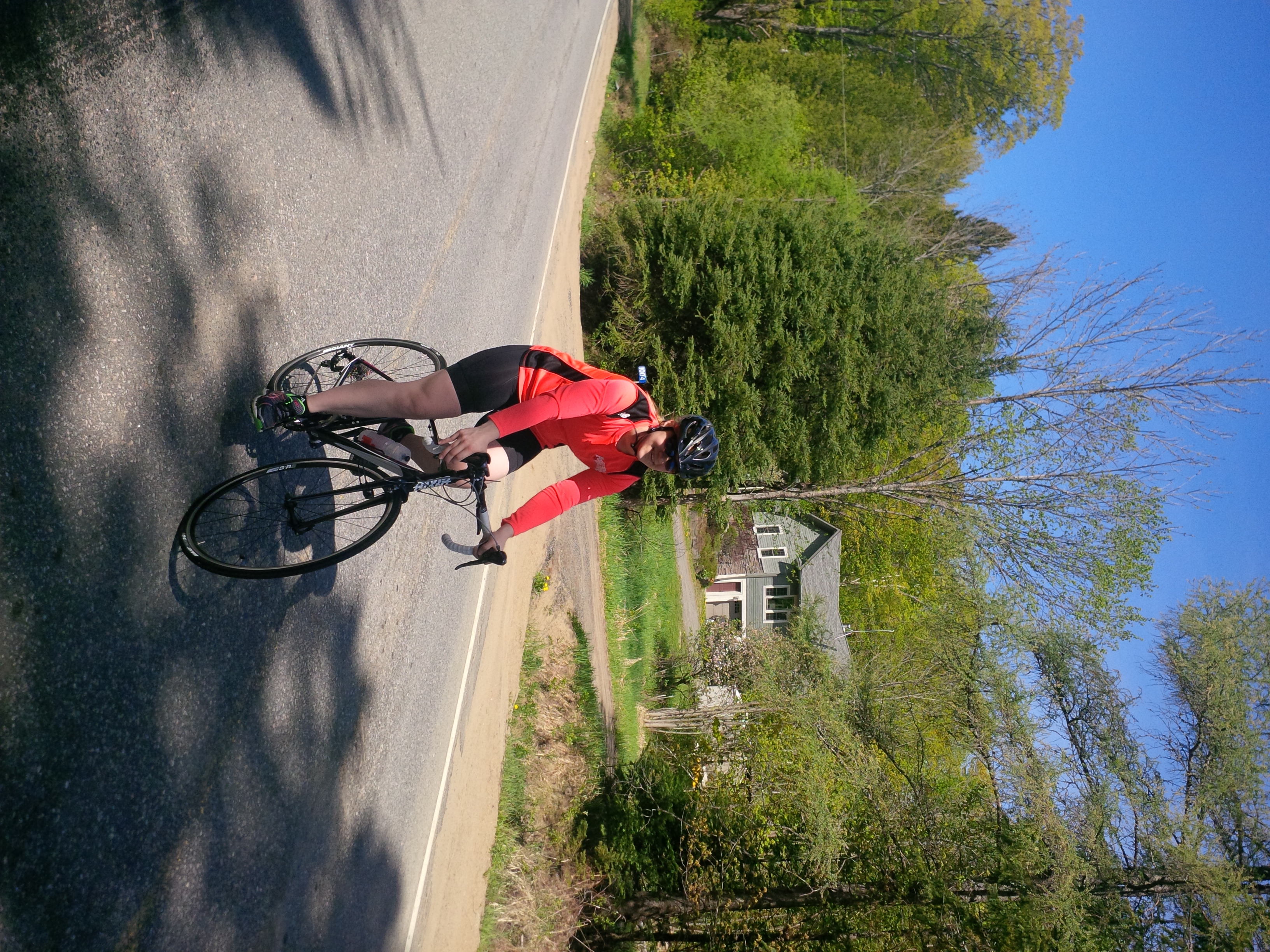 I was so beyond freaked out for that first 10km stretch. We were on a relatively quiet road, but every car that passed us scared the bajesus out of me. Our average speed was about 15km/hour for that first stretch, and we only came across about 2 hills that were serious enough for me to remember them now. I got my first taste of climbing a “real” hill on a bike (not the imaginary hills that the spin class instructors put in front of you when they tell you to CRANK THAT DIAL).