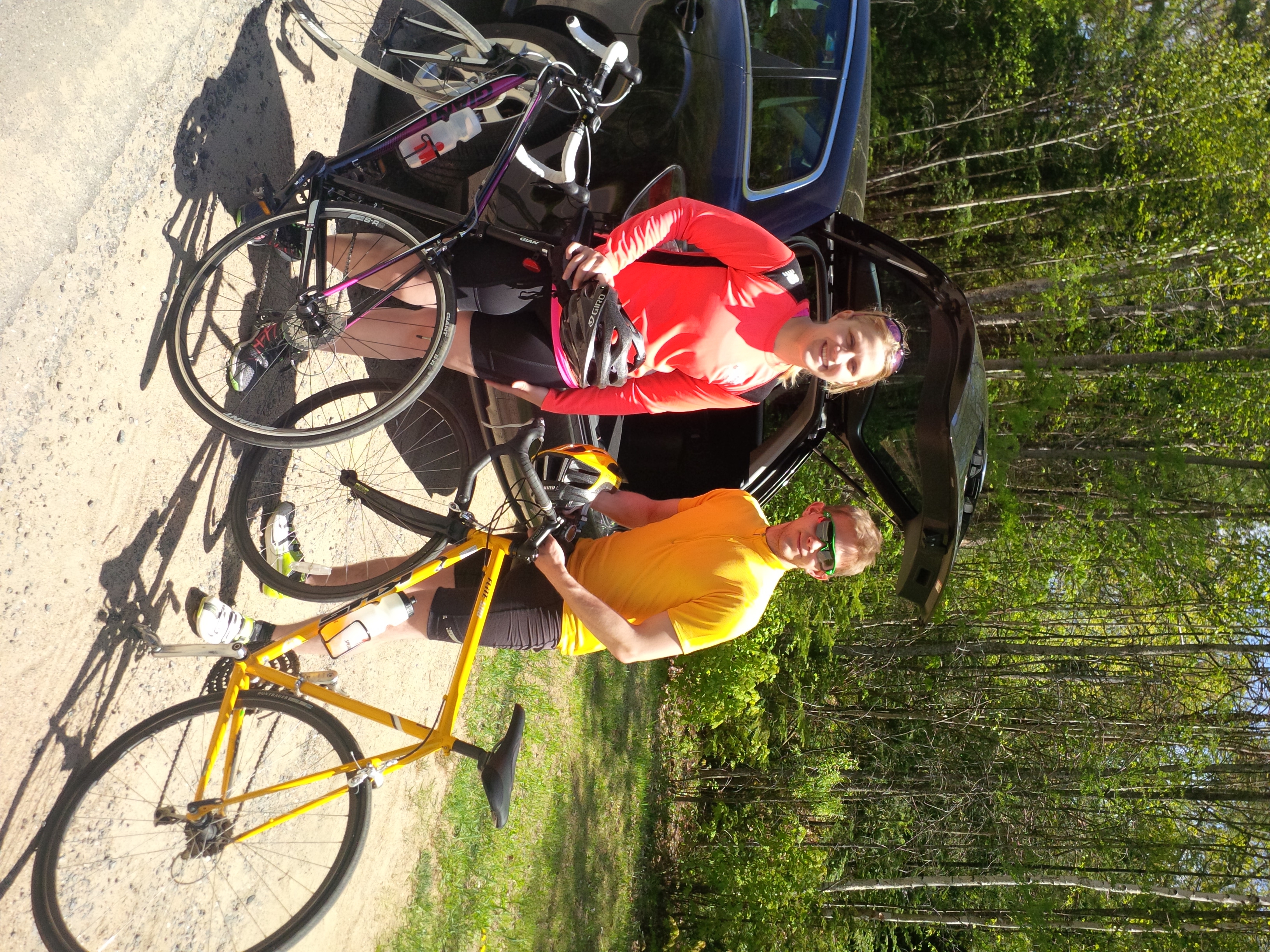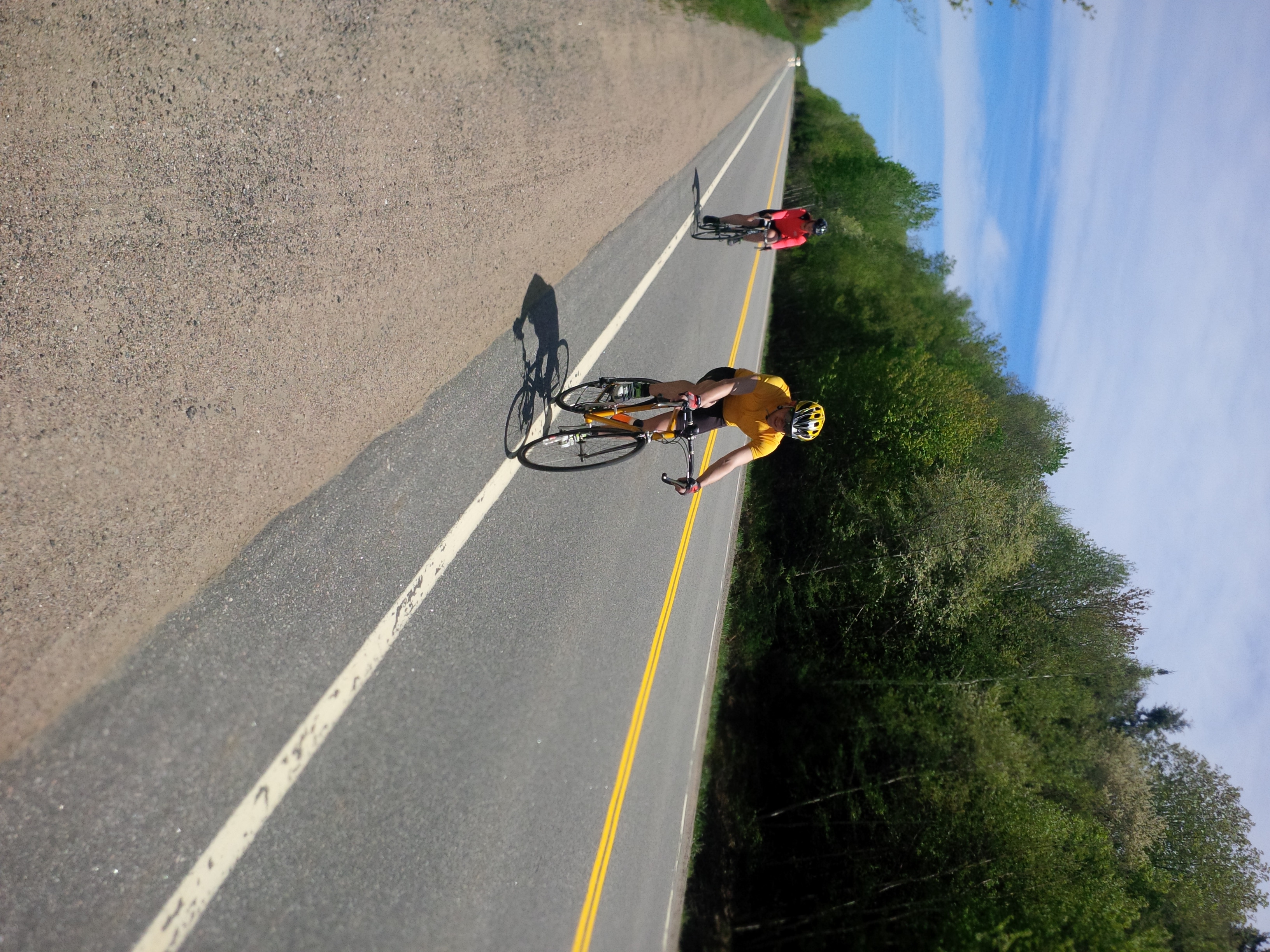 We got out of the car and instantly got swarmed by FLOCKS of black flies (I’m serious, flocks), so Jess and I hid out in my car while Matt and Neil put Jilly and Neil’s bike together outside. The plan was for Neil and I to start out together, and see how we were feeling. Although we had set the goal of biking 50 or 60 kilometres that day, we knew that there was no shoulder on a lot of the highway that we needed to bike on, so we decided to play it by ear and make a judgment call when we got to those points in the course. We hopped on our bikes and started away down the course. Here goes nothing.