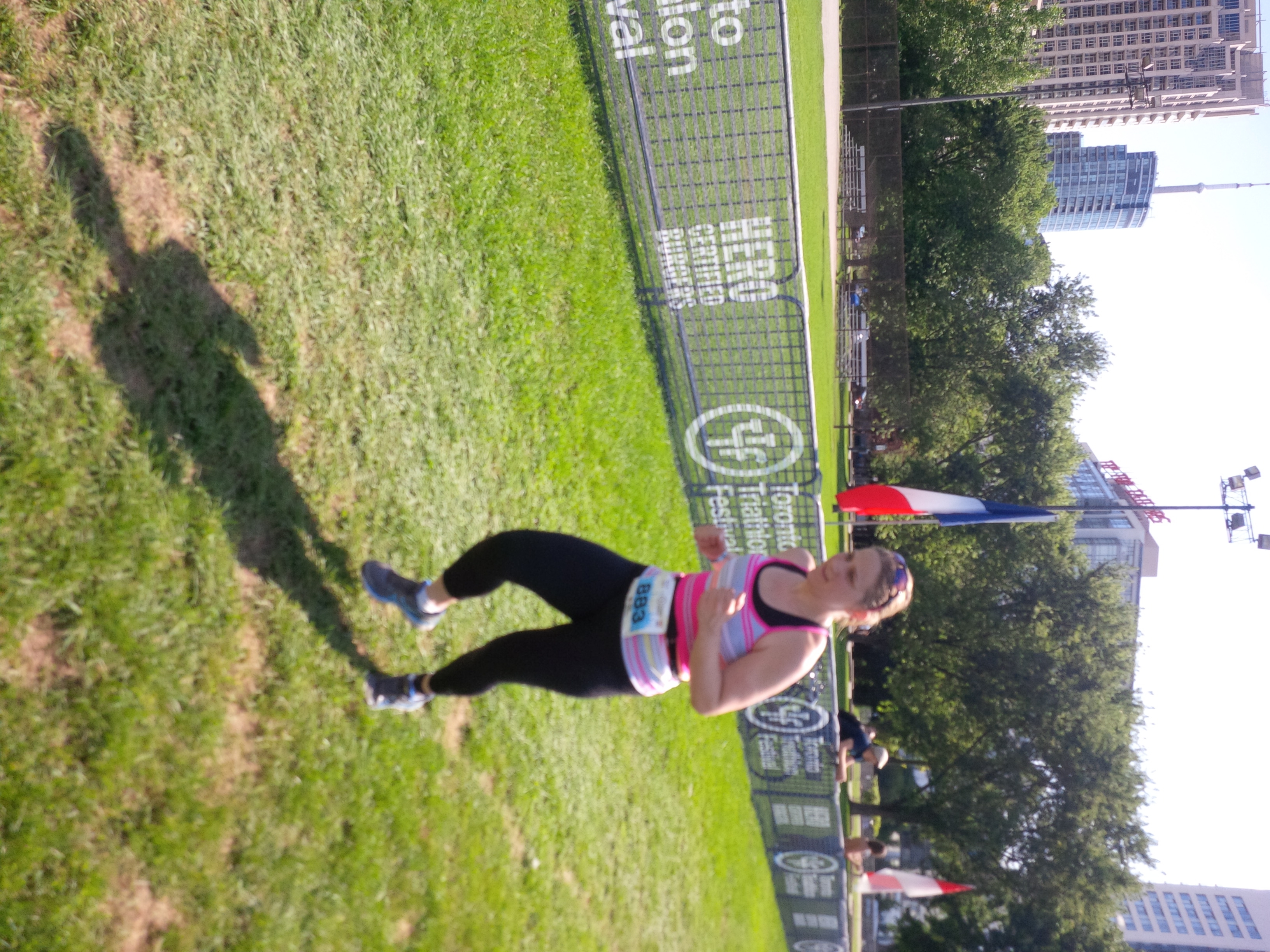 I had a quick bathroom break before I started out on the run, and I felt terrific as I started out. I remembered back to Milton when I started running, my legs had felt like lead, like they weren’t even connected to my body really. It took my at least half if not more of my run to even get my head around the fact that I was starting to run. Toronto was completely and totally different. My legs didn’t feel heavy, they felt strong. I had a really good feeling as I started out.