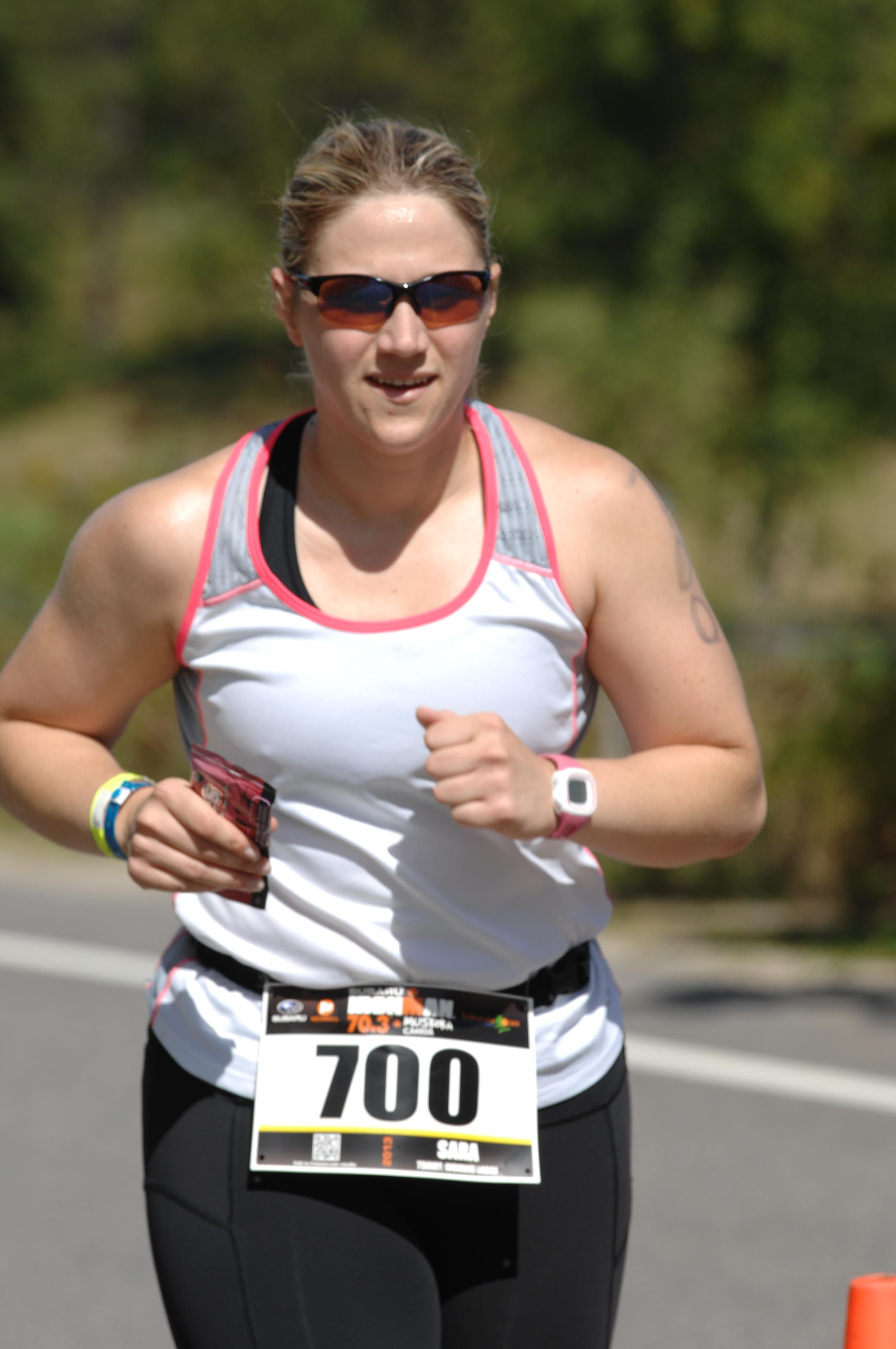 I passed by an older man (I think the number on the back of his leg was 56 or something like that) who was running close to the same speed that I was (when I was running), and he asked me how my day was going. We chatted a little bit about our experience on the bike, and both said how grateful we were that it was over. We carried on, and he would pass me whenever I started to walk, but then I would pass him again when I started to run. We carried on back and forth like this for almost the entire run.