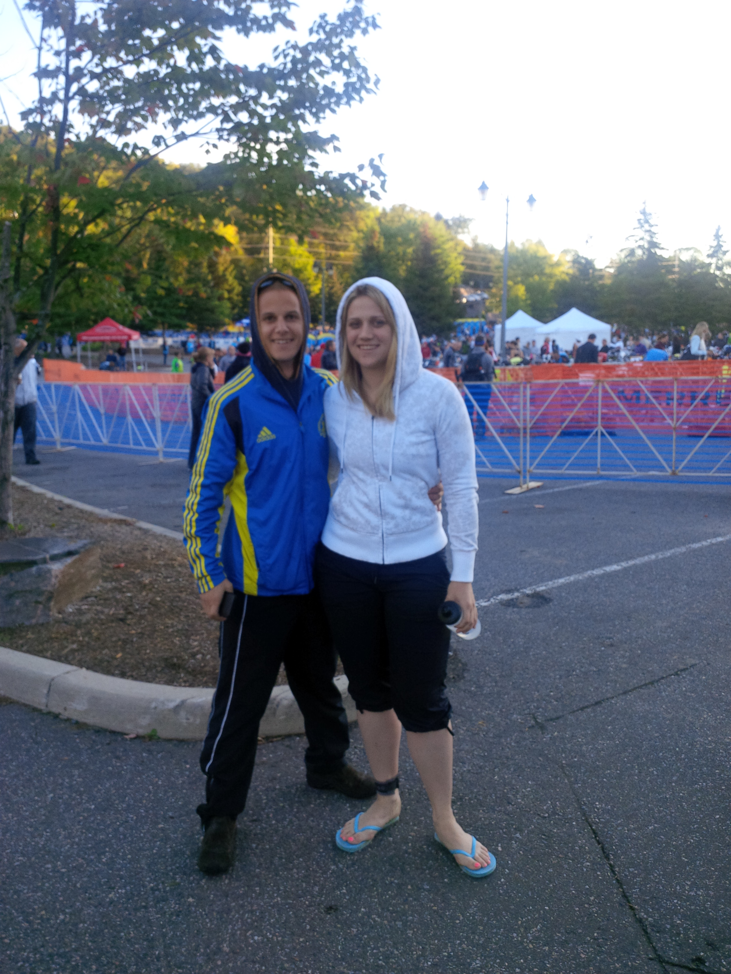 Anyways, we had a good laugh about the $100 budget movie, and then went over to East Sides to meet up with the rest of Matt’s family and Jess. East Side’s was totally packed, so I was very relieved to have a reservation so that we didn’t have to stress out about getting in and getting seated. I ate a whole bunch of that irresistible garlic bread, a big garden salad and a pretty basic spaghetti and meatballs, which I also added chicken to for some extra protein. I started to feel super nervous around dinner time. The day was wrapping up and the list of things that stood between me and the start of the race was slowly diminishing. The “excited” feeling started to give way to the “vomit” feeling.