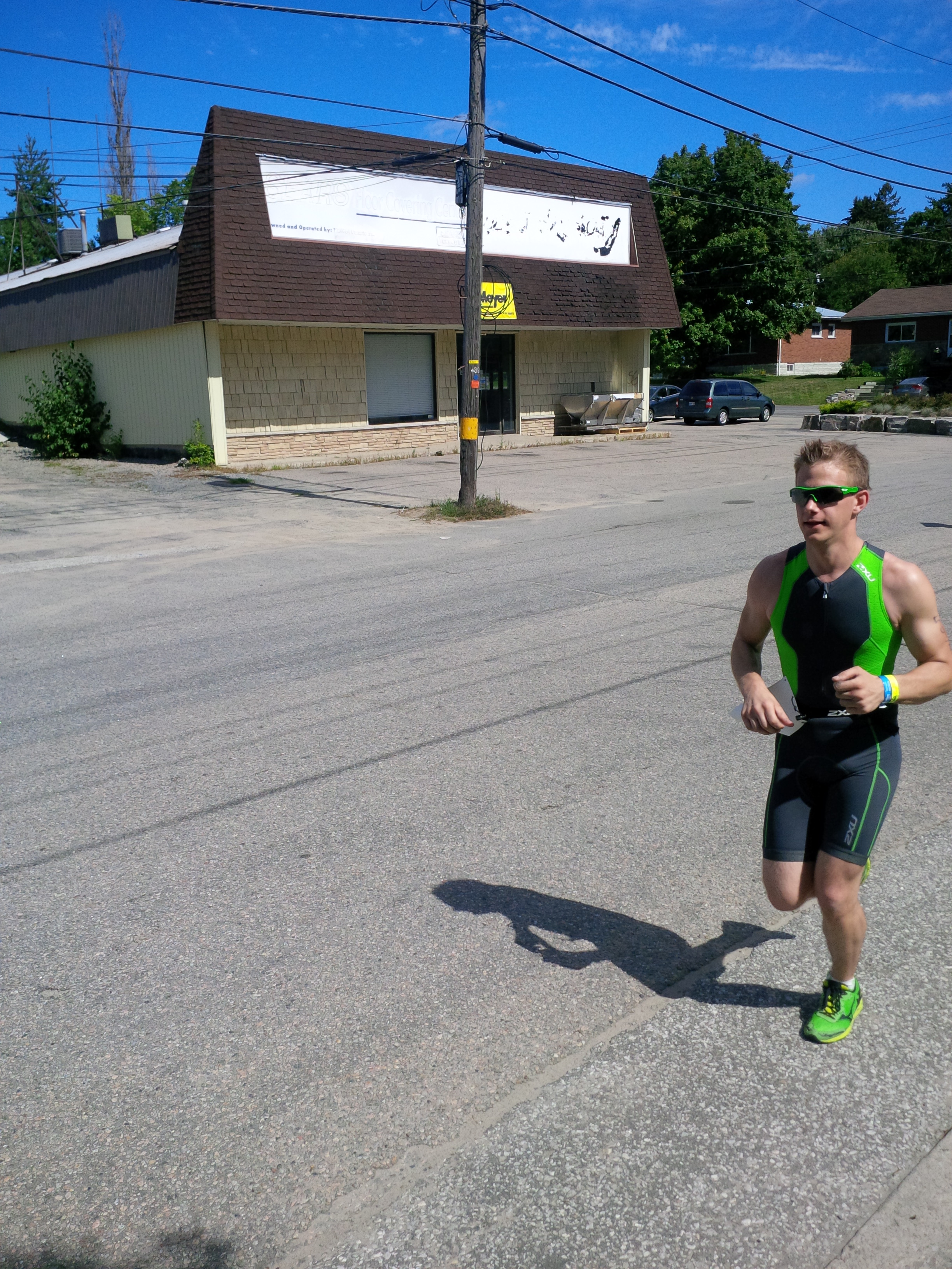 At long last I saw the bike support van! The only thing was that I was at the 85km mark, and so I didn’t stop for repairs, I continued on with what I had. I made it up the last few hills before the final turn to the transition area (Deerhurst). When I made that final turn to Deerhurst all the emotions of what I just went through came rushing back! I HAD MADE IT! There might have even been a few tears, but they were tears of joy! I just made it through the toughest section of any event I have ever been in. I didn’t care about how the run was going to go, because I knew that whatever the run threw at me I would be able to work through it.